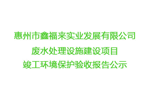 惠州市鑫福來實(shí)業(yè)發(fā)展有限公司廢水處理設(shè)施竣工環(huán)境保護(hù)驗(yàn)收?qǐng)?bào)告公示